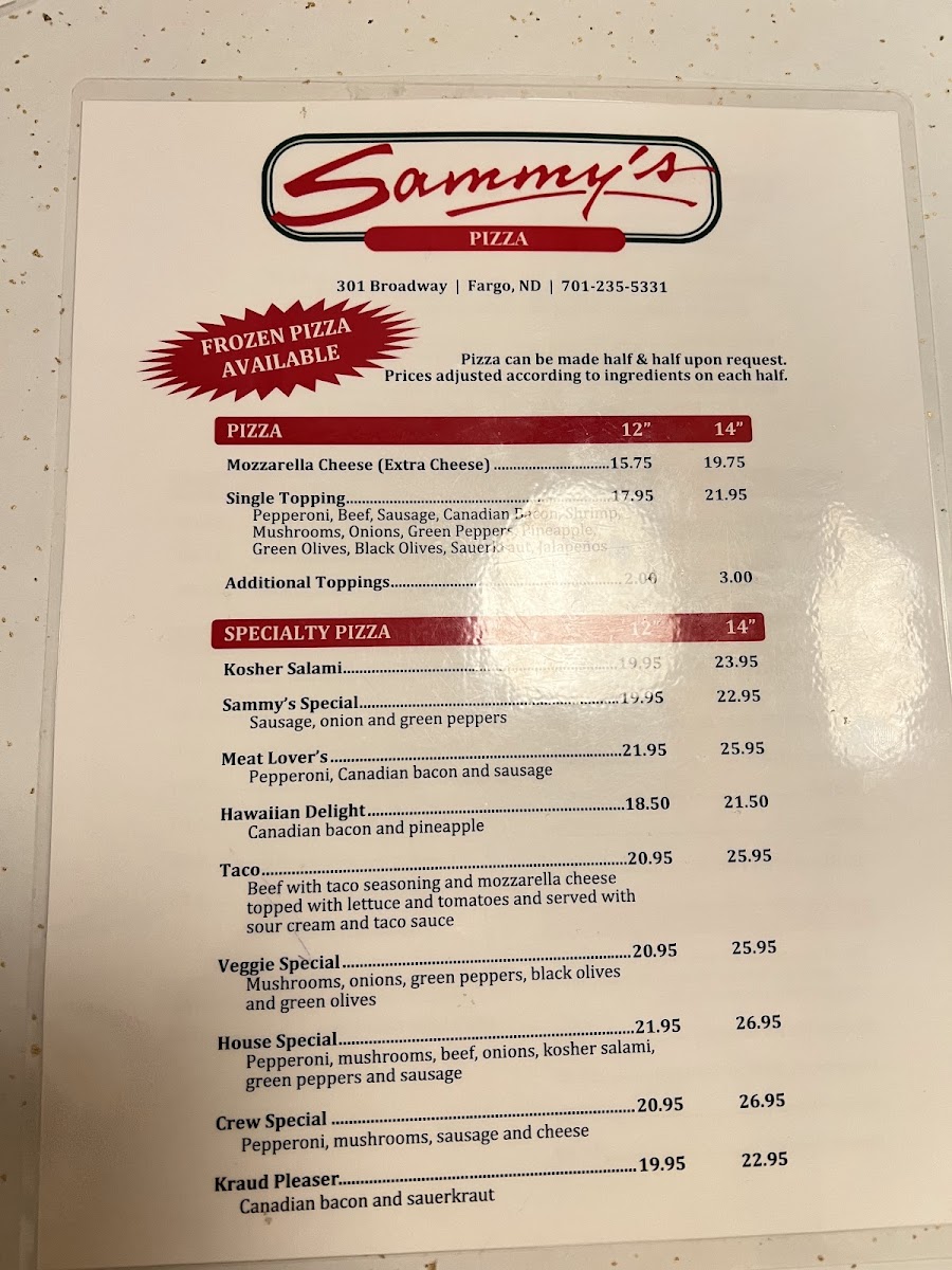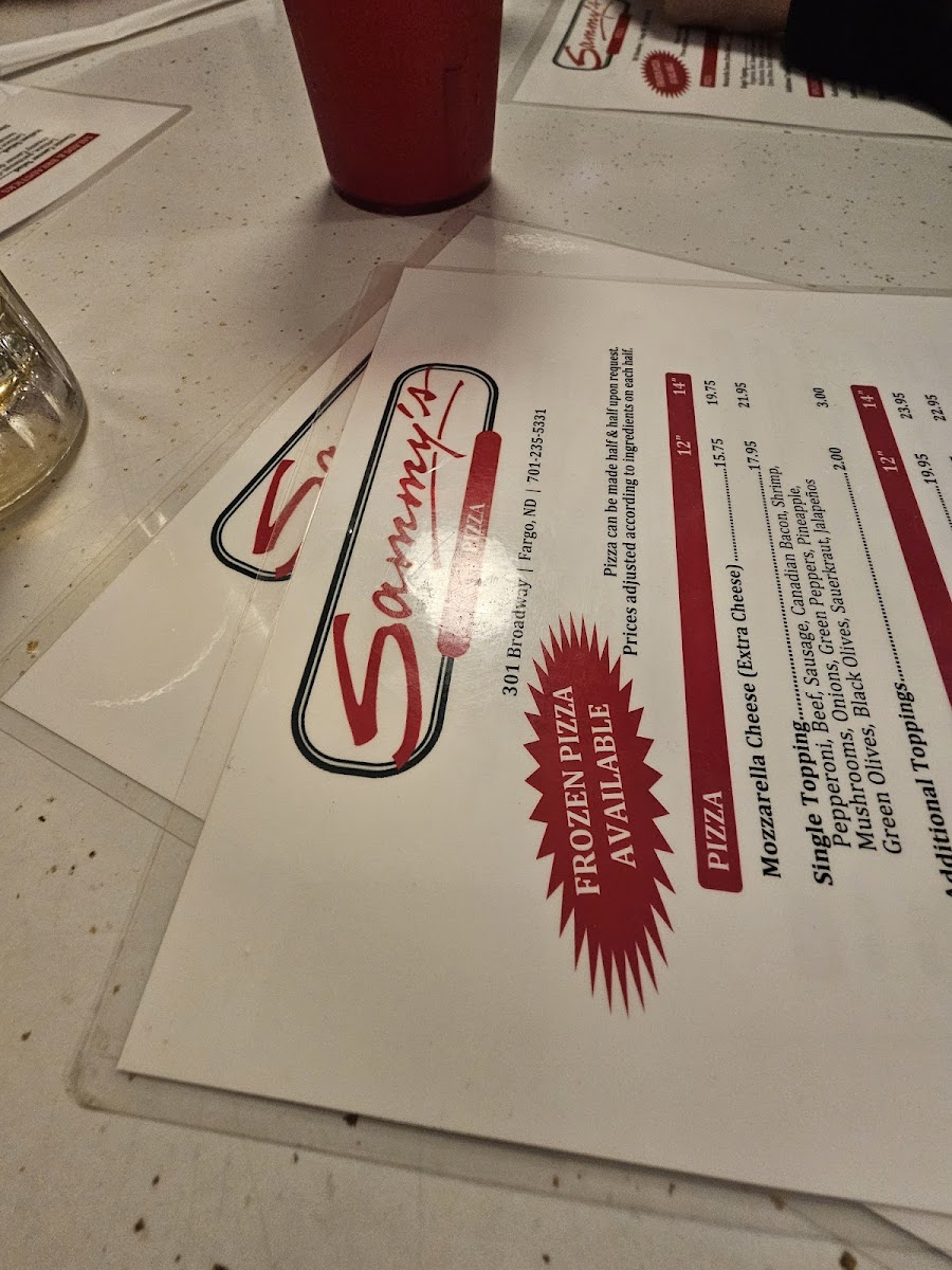 Sammy’s offers a straightforward and inviting menu centered around classic pizza favorites with a nostalgic touch. The focus is on thin, square-cut pies with a variety of traditional toppings, making it an ideal spot for casual meals and leisurely gatherings. Whether you’re stopping by for a quick lunch or settling in for dinner with friends and family, the menu feels both familiar and satisfying.